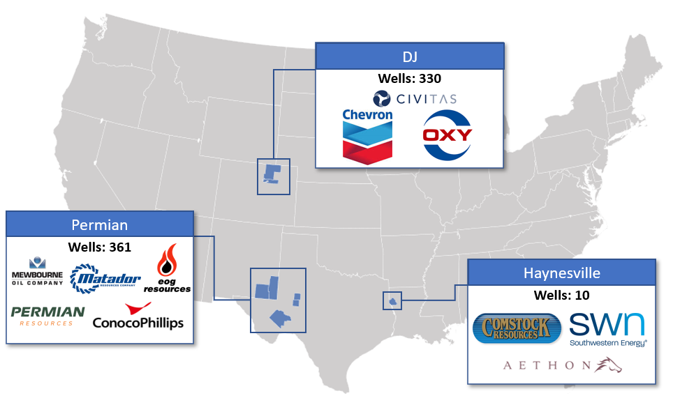 Our current focus is in the Permian Basin in Texas and New Mexico, the DJ Basin in Colorado, and the Haynesville Shale in Texas and Louisiana.